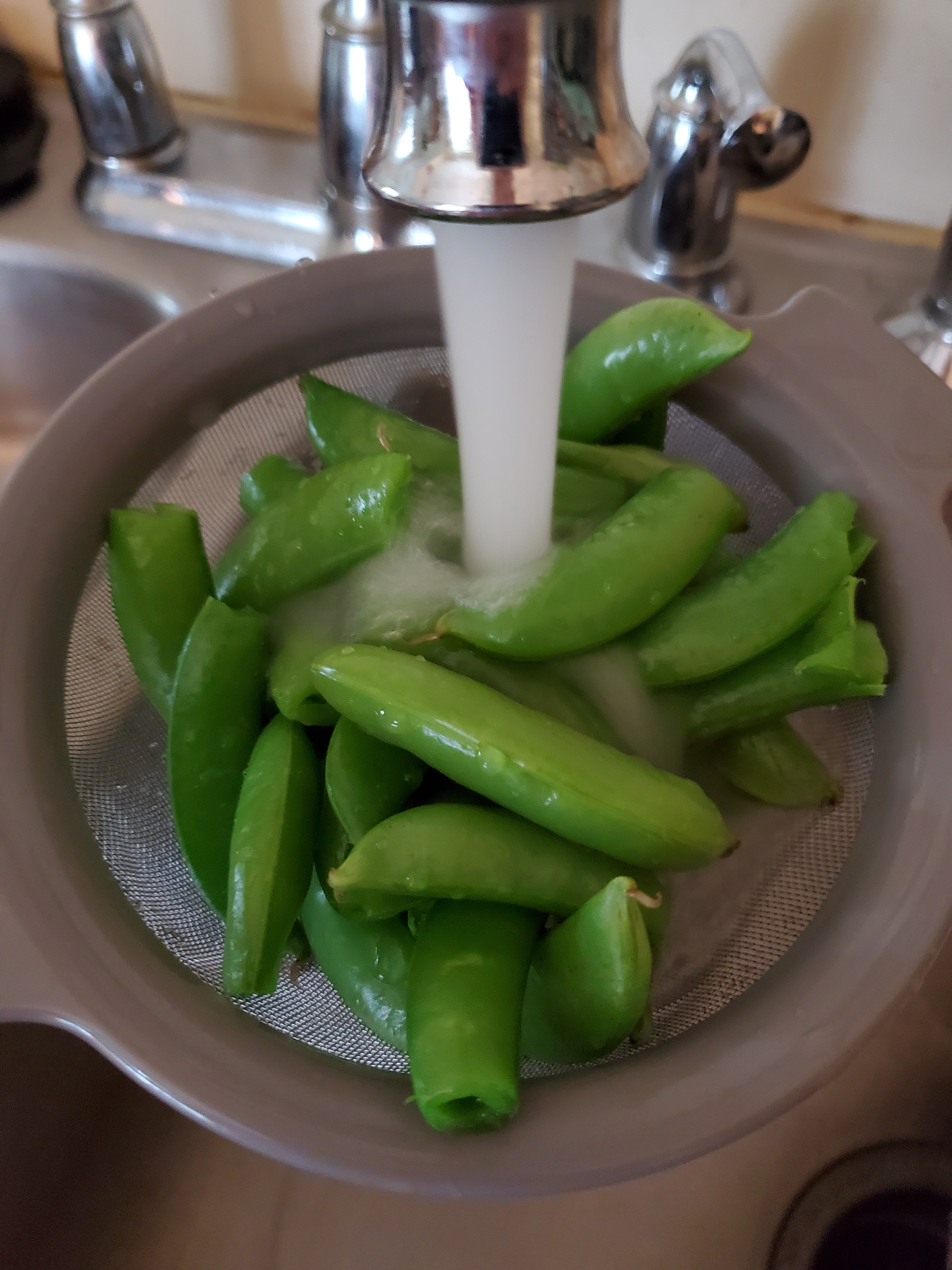 Bring water to a nice boil and then add your prepped veggies. Allow your water to return to a boil. Blanch for 1-3 minutes – smaller, “softer” veggies like these snap peas don’t need much time, while sturdier ones like beets need a couple minutes. Drain and rinse immediately with cold water or transfer to an ice bath to stop cooking. Blanching allows your veggies to keep for a good year in your freezer – just long enough for the next round of farmers’ markets!
