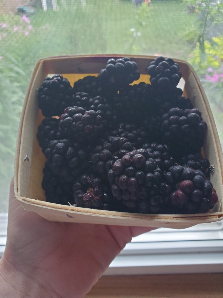 1/2 c. (generous!) blackberries, cut up if too big (mine were as big as my thumb so I cut into thirds/fourths